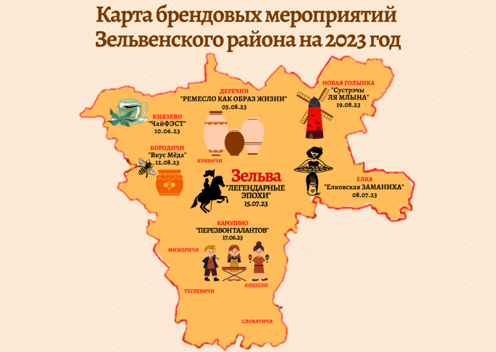 Карта брендовых мероприятий в  Зельвенском районе Гродненской области в 2025 году