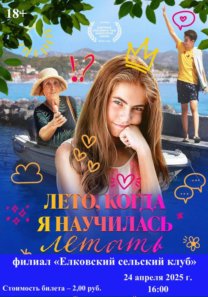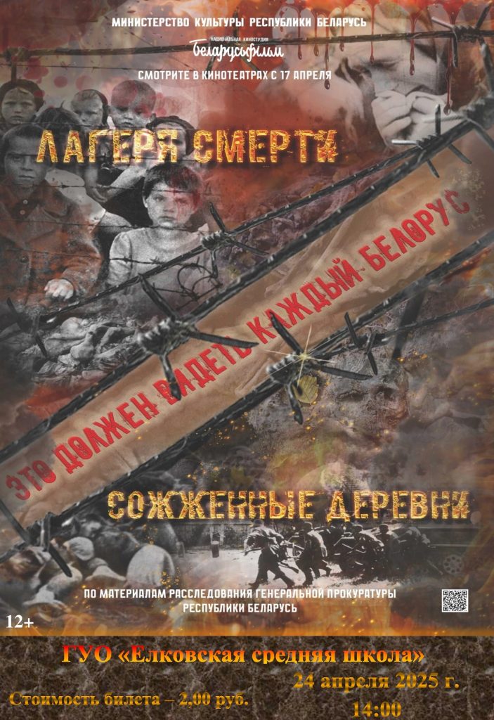 24 апреля 2025 г. состоятся кинопоказы в ГУО «Елковская средняя школа» и филиале «Елковский сельский клуб» в 14:00 и 16:00 соответственно. Приглашаем на просмотр!