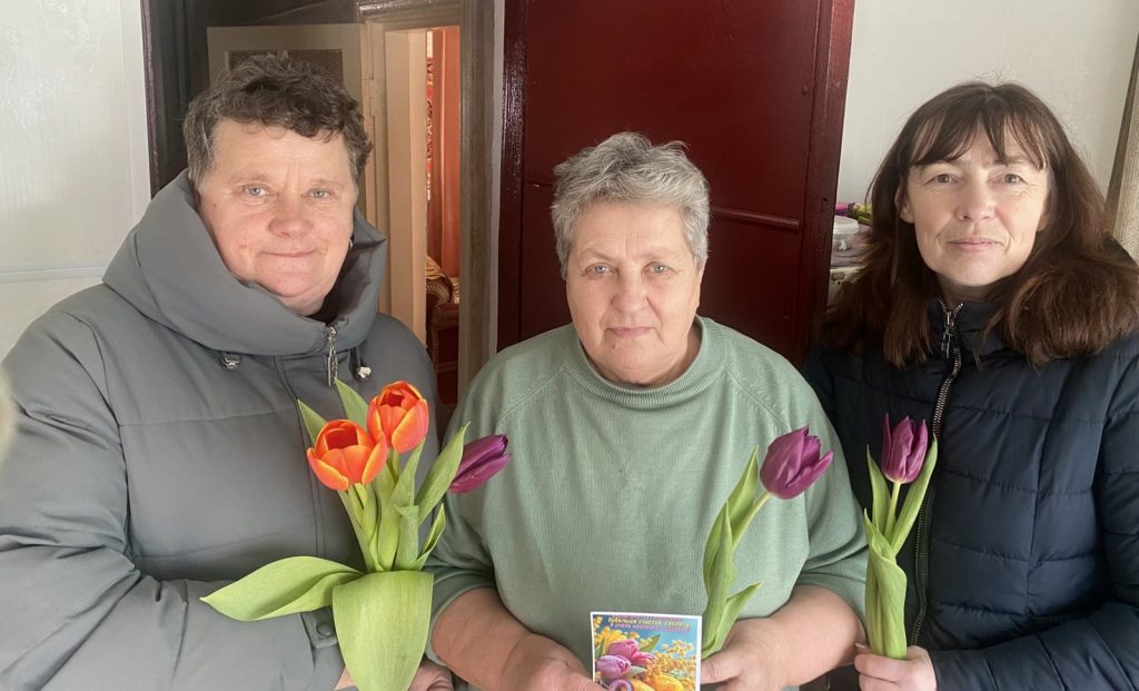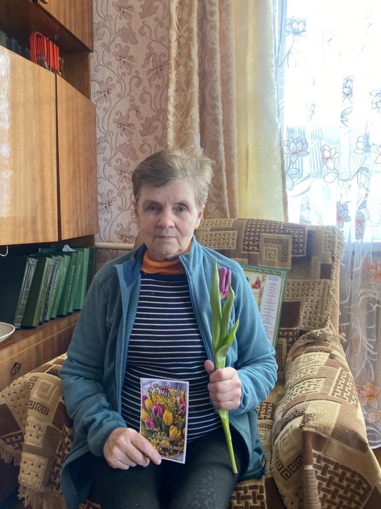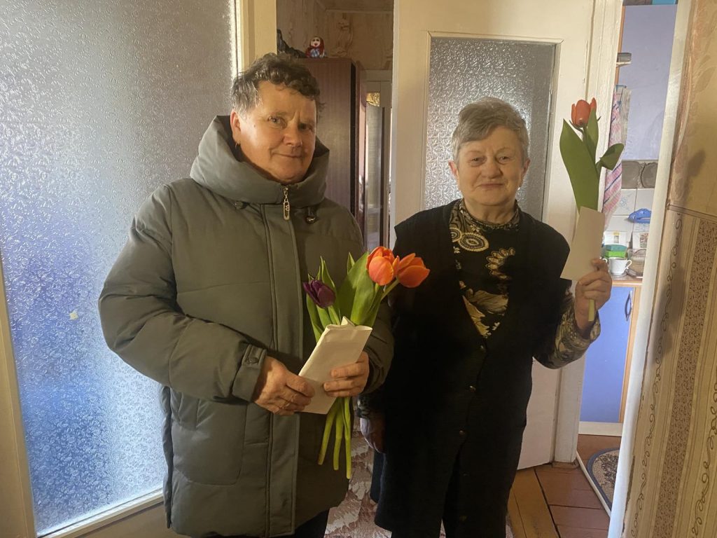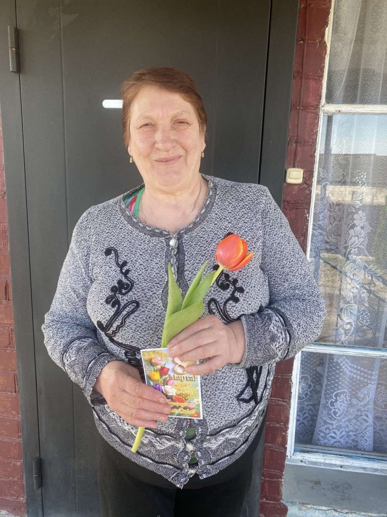 На память о встрече милые женщины получили весенние цветы и праздничные открытки.