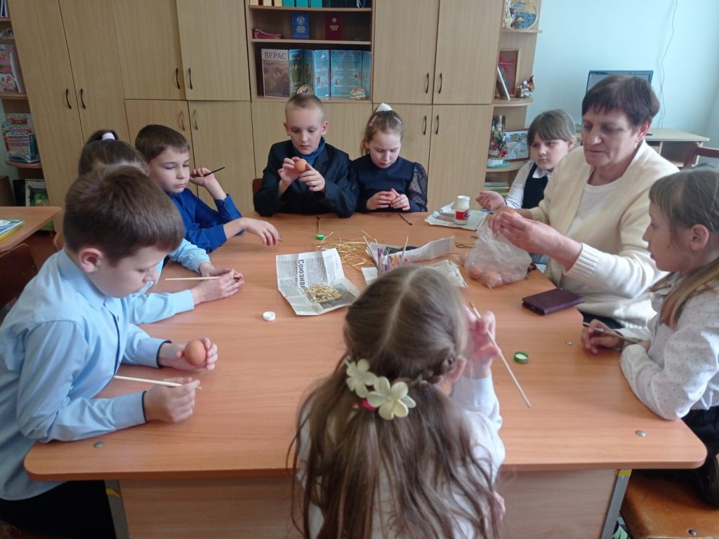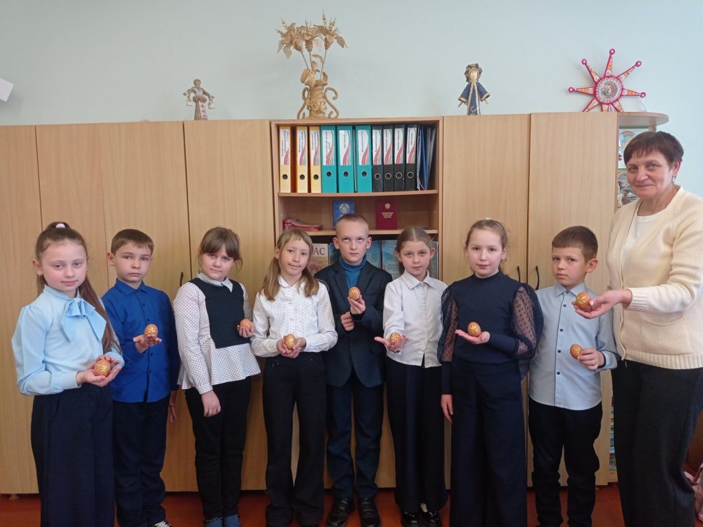 💫 В преддверии празднования Пасхи мастер народных художественных ремесел Лилия Амельянчик провела мастер-класс по аппликации Пасхального яйца в Голынковской СШ имени В. Ф. Дравицы.